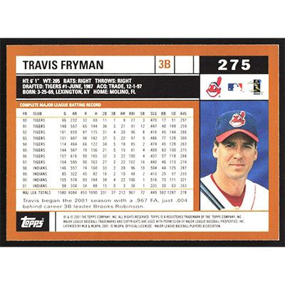 This is a 2002 Topps Travis Fryman baseball card. The card is #275 and pictures show condition.