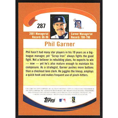 This is a 2002 Topps Phil Garner baseball card. The card is #287 and pictures show condition.