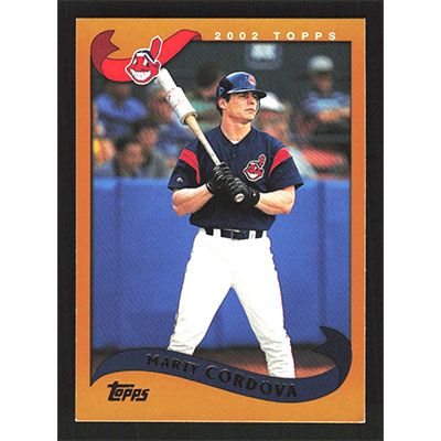 This is a 2002 Topps Marty Cordova baseball card. The card is #33 and pictures show condition.