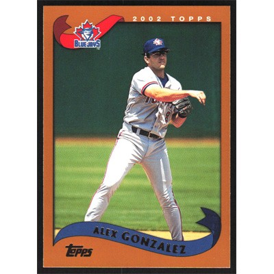 This is a 2002 Topps Alex Gonzalez baseball card. The card is #36 and pictures show condition.
