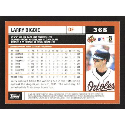 This is a 2002 Topps Larry Bigbie baseball card. The card is #368 and pictures show condition.