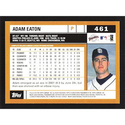 This is a 2002 Topps Adam Eaton baseball card. The card is #461 and pictures show condition.