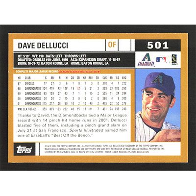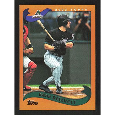 This is a 2002 Topps David Dellucci baseball card. The card is #501 and pictures show condition.