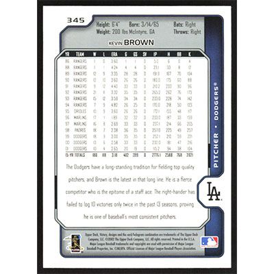 This is a 2002 Upper Deck Victory Kevin Brown baseball card. The card is #345 and pictures show condition.