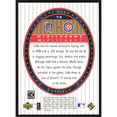 This is a 2002 Upper Deck World Series Heroes Ty Cobb baseball card. The card is #70 and pictures show condition.