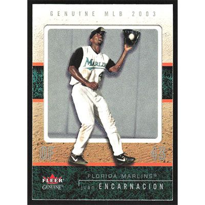 This is a 2003 Fleer Genuine Juan Encarnacion baseball card. The card is #40 and pictures show condition.