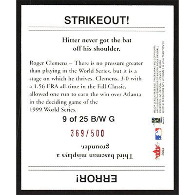 This is a 2003 Fleer Tradition Black-White Goudey Red Roger Clemens baseball card. The card is #9 and pictures show condition. This card is limited; #'d 369/500.