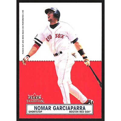 This is a 2003 Fleer Tradition Standouts Nomar Garciaparra baseball card. The card is #NNO and pictures show condition.