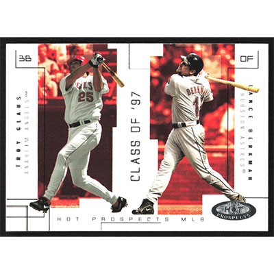 This is a 2003 Hot Prospects Class Of '97 Troy Glaus and Lance Berkman baseball card. The card is #5 and pictures show condition. Team(s): Anaheim Angels/Houston Astros