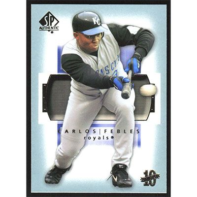 This is a 2003 SP Authentic Carlos Febles baseball card. The card is #28 and pictures show condition.