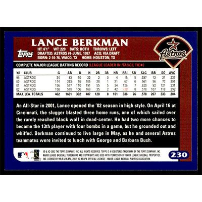 This is a 2003 Topps Lance Berkman baseball card. The card is #230 and pictures show condition.