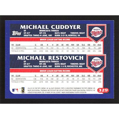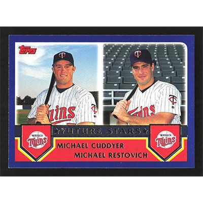 This is a 2003 Topps Michael Cuddyer and Michael Restovich Future Stars baseball card. The card is #329 and pictures show condition. Team(s): Minnesota Twins