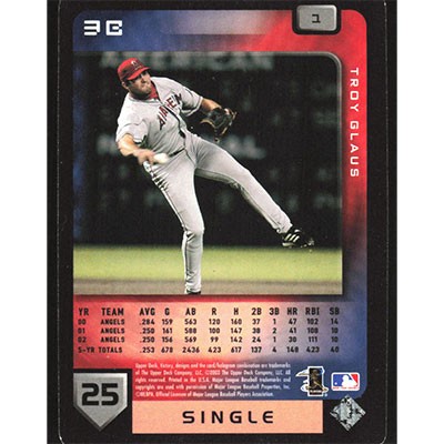 This is a 2003 Upper Deck Victory Troy Glaus baseball card. The card is #1 and pictures show condition.