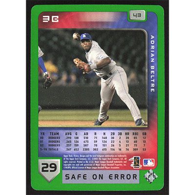 This is a 2003 Upper Deck Victory Tier 1 Green Adrian Beltre baseball card. The card is #43 and pictures show condition.