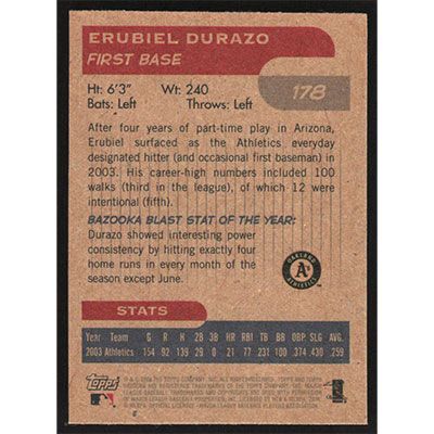 This is a 2004 Bazooka Minis Erubiel Durazo baseball card. The card is #178 and pictures show condition.