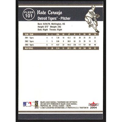 This is a 2004 Fleer Tradition Nate Cornejo baseball card. The card is #101 and pictures show condition.