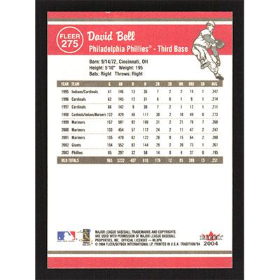 This is a 2004 Fleer Tradition David Bell baseball card. The card is #275 and pictures show condition.