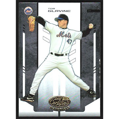 This is a 2004 Leaf Certified Materials Tom Glavine baseball card. The card is #182 and pictures show condition.