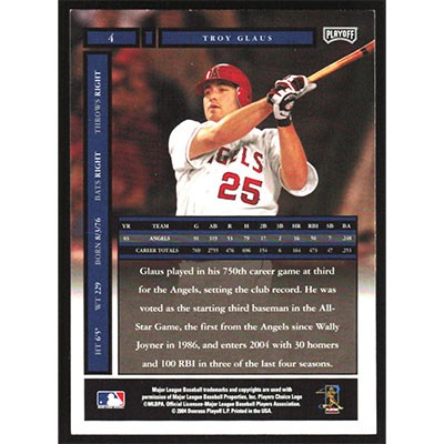 This is a 2004 Playoff Honors Troy Glaus baseball card. The card is #4 and pictures show condition.