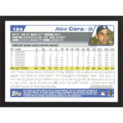 This is a 2004 Topps Alex Cora baseball card. The card is #134 and pictures show condition.
