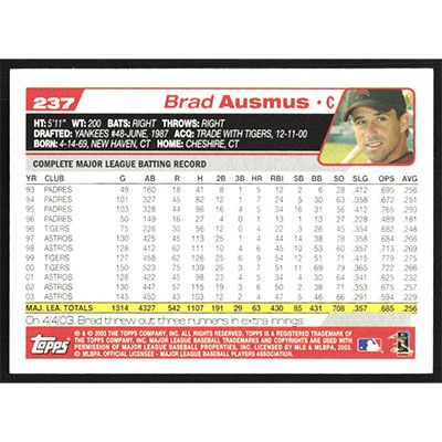 This is a 2004 Topps Brad Ausmus baseball card. The card is #237 and pictures show condition.