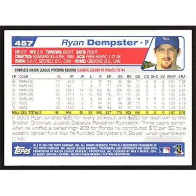This is a 2004 Topps Ryan Dempster baseball card. The card is #457 and pictures show condition.