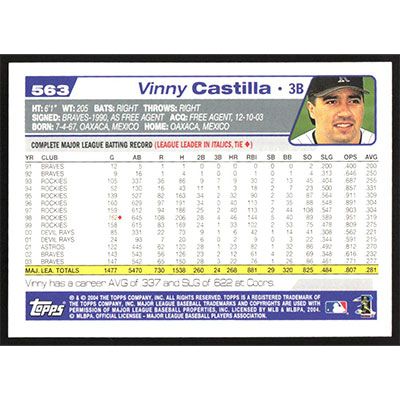 This is a 2004 Topps Vinny Castilla baseball card. The card is #563 and pictures show condition.
