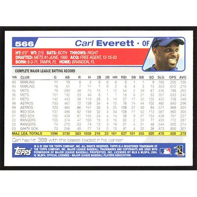 This is a 2004 Topps Carl Everett baseball card. The card is #566 and pictures show condition.