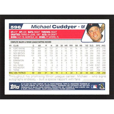 This is a 2004 Topps Michael Cuddyer baseball card. The card is #596 and pictures show condition.