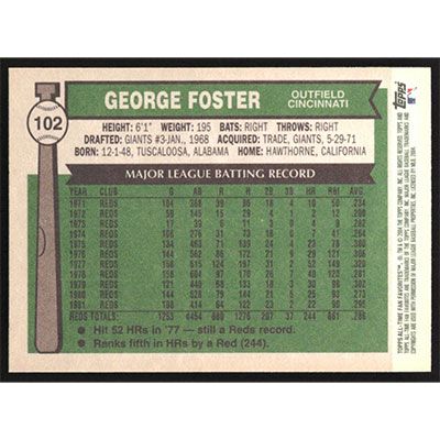 This is a 2004 Topps All-Time Fan Favorites George Foster baseball card. The card is #102 and pictures show condition.