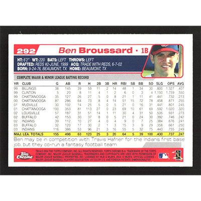 This is a 2004 Topps Chrome Ben Broussard baseball card. The card is #292 and pictures show condition.