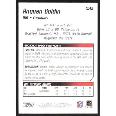 This is a 2004 Topps Draft Picks & Prospects Gold Chrome Anquan Boldin football card. The card is #56 and pictures show condition. Team: Arizona Cardinals