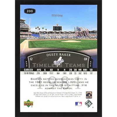 This is a 2004 UD Legends Timeless Teams Dusty Baker baseball card. The card is #200 and pictures show condition.