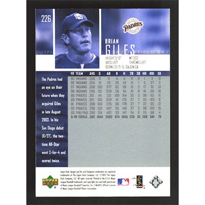 This is a 2004 Upper Deck Brian Giles baseball card. The card is #226 and pictures show condition.