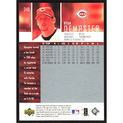 This is a 2004 Upper Deck Ryan Dempster baseball card. The card is #249 and pictures show condition.