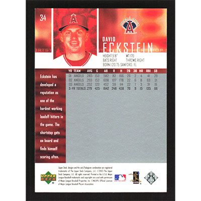 This is a 2004 Upper Deck David Eckstein baseball card. The card is #34 and pictures show condition.