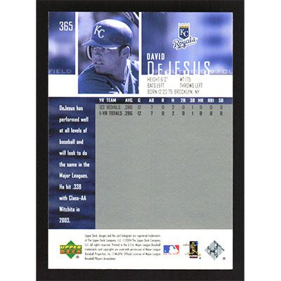 This is a 2004 Upper Deck David DeJesus baseball card. The card is #365 and pictures show condition.