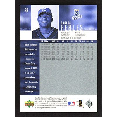 This is a 2004 Upper Deck Carlos Febles baseball card. The card is #99 and pictures show condition.