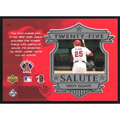 This is a 2004 Upper Deck Twenty-Five Salute Troy Glaus baseball card. The card is #S-2 and pictures show condition.