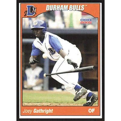 This is a 2005 Choice Durham Bulls Joey Gathright baseball card. The card is #17 and pictures show condition.