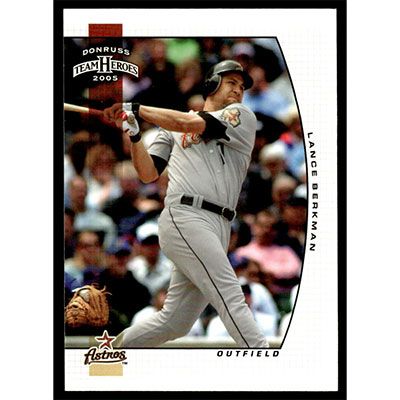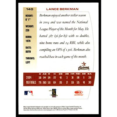 This is a 2005 Donruss Team Heroes Lance Berkman baseball card. The card is #140 and pictures show condition.
