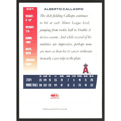 This is a 2005 Donruss Team Heroes Alberto Callaspo baseball card. The card is #331 and pictures show condition.