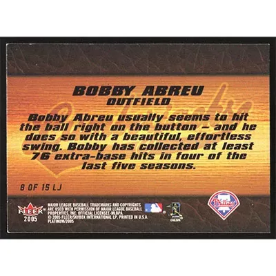 This is a 2005 Fleer Platinum Lumberjacks Bobby Abreu baseball card. The card is #8 and pictures show condition.