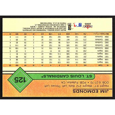 This is a 2005 Fleer Tradition Jim Edmonds baseball card. The card is #125 and pictures show condition.
