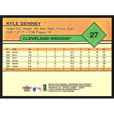 This is a 2005 Fleer Tradition Kyle Denney baseball card. The card is #27 and pictures show condition.
