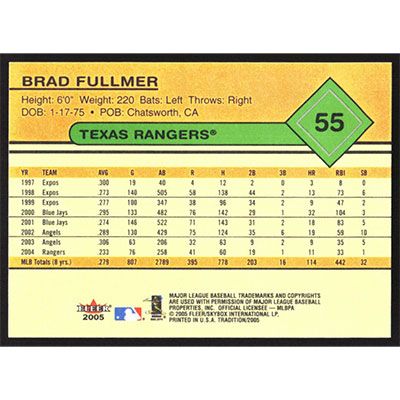 This is a 2005 Fleer Tradition Brad Fullmer baseball card. The card is #55 and pictures show condition.