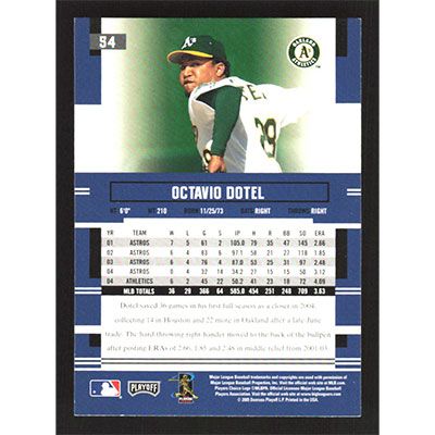 This is a 2005 Playoff Prestige Octavio Dotel baseball card. The card is #54 and pictures show condition.