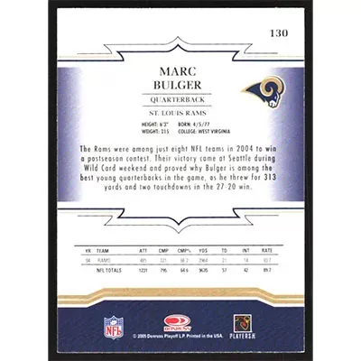 This is a 2005 Throwback Threads Marc Bulger football card. The card is #130 and pictures show condition.