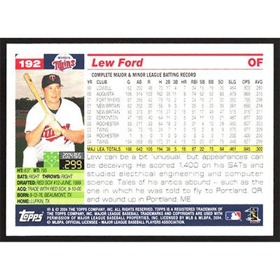 This is a 2005 Topps Lew Ford baseball card. The card is #192 and pictures show condition.