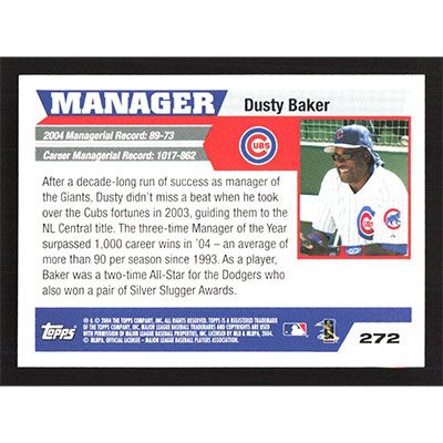 This is a 2005 Topps Dusty Baker baseball card. The card is #272 and pictures show condition.